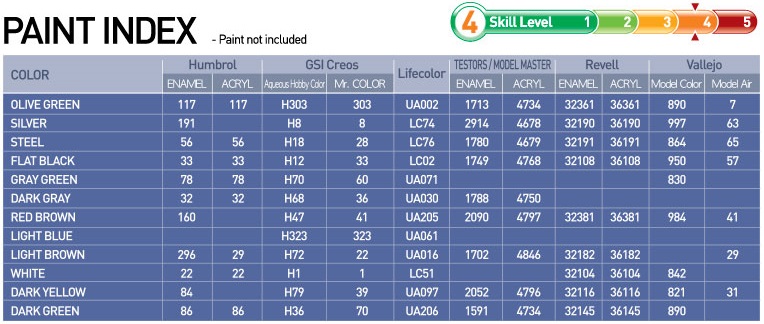 Farby sugerowane przez producenta do pomalowania modelu Academy 12538 IL-2M & Panther D :